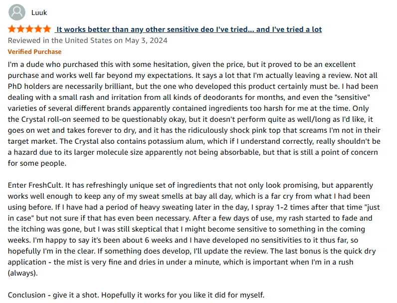 FreshCult is also effective against stress body odor.